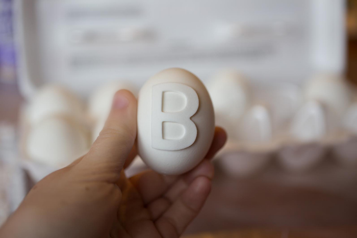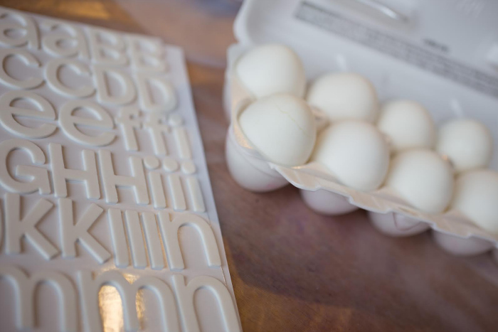 Τοποθετήστε ένα αυτοκόλλητο στο μπροστινό μέρος του κάθε αυγού. Μπορείτε να χρησιμοποιήσετε σημεία στίξης, όπως * και {} για να διακοσμήσετε τα γράμματα ακόμη περισσότερο.