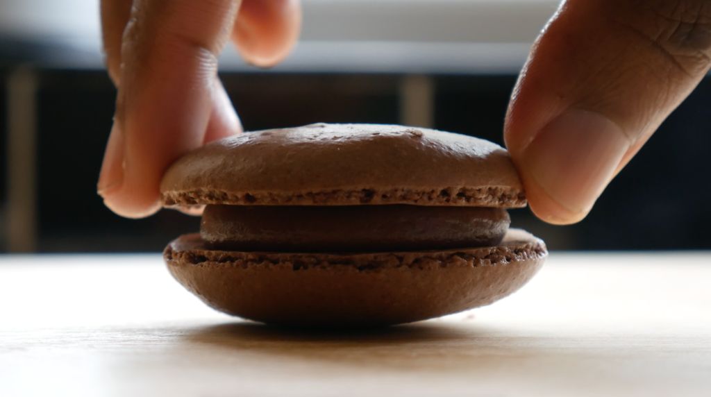 Γεμίστε τα μακαρόν με τη γκανάς σοκολάτας.