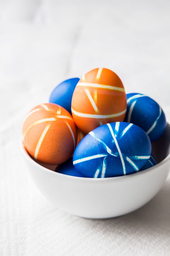Αν θέλετε τα αυγά σας να έχουν ρίγες, το μόνο που έχετε να κάνετε είναι να δέσετε κάτι γύρω τους και να τα βάψετε. Όταν τελειώσετε απλά πρέπει να αφαιρέσετε τα δεσίματα.
