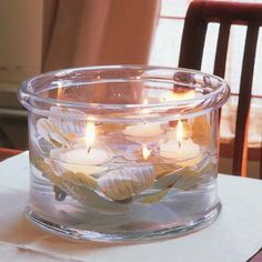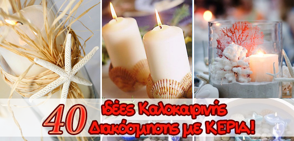 Τα κεριά μπορούν υπέροχα να συνδυαστούν με όμορφα φανάρια, να τοποθετήσετε κεριά μέσα σε μεγάλα βάζα ή γυάλες και μαζί να τοποθετήσετε μέσα άμμο, κοχύλια, αστερίες. Δείτε εδώ πώς μπορείτε να καθαρίσετε και να γυαλίσετε όστρακα έτσι ώστε να είναι όσο το δυνατόν πιο όμορφα μέσα στις γυάλες και τα βάζα σας!