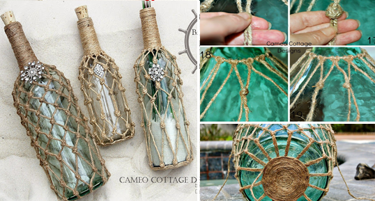 Και μια έξτρα όμορφη ιδέα είναι σε μεγάλα μπουκάλια και νταμιτζάνες να κλείσετε με πώμα. Και ξέρετε τι πώμα είναι αυτό; Κάποτε ήταμ μια λάμπα. Μια απλή λάμπα. Τυλίξτε με σκοινί και κόλλα και μόλις αποκτήσατε και καπάκι για το μπουκάλι σας!