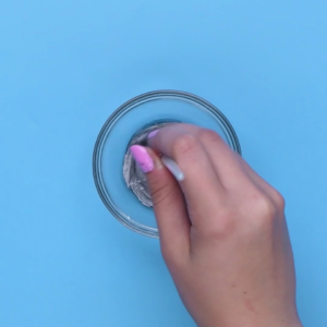 Στο μπωλ ανακατεύουμε 2 κουταλιές ακρυλική μπογιά και μια κουταλιά απορρυπαντικό