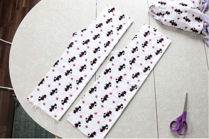 Κόψτε 2 κομμάτια (ένα για κάθε πόδι) , χρησιμοποιώντας παλιό ζευγάρι σας ως οδηγό. Σιγουρευτείτε ότι έχετε αφήσει τουλάχιστον 1cm περιθώριο ραφής στις πλευρές. Θα χρειαστείτε περίπου 7,5 cm στην κορυφή για να βάλετε το λάστιχο, και 2cm για το στρίφωμα, ανάλογα με το πόσο μεγάλο θα γίνει.
