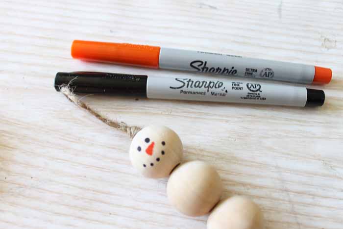 Χρησιμοποιήστε τους μαρκαδόρους για να φτιάξετε το πρόσωπο του χιονάνθρωπου.