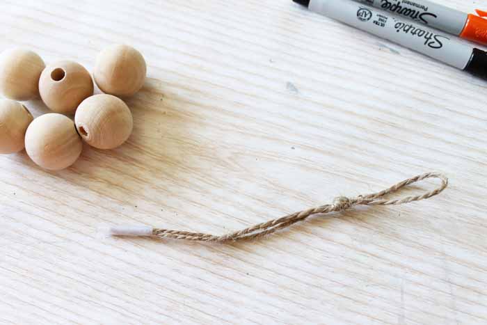 Κόψτε ένα κομμάτι σπάγκο και κάντε μια θηλιά στο ένα άκρο. Ενώστε τις δύο άκρες και τυλίξτε την ταινία γύρω τους. Αυτό θα σας βοηθήσει να περάσετε τις ξύλινες χάντρες. Δεν απαιτείται, αλλά σίγουρα συνιστάται.