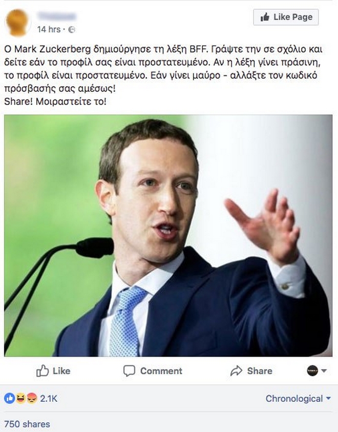 Σε μια περίοδο μεγάλης ανακατωσούρας στο Facebook λόγω του σκανδάλου της Cambridge Analytica και των προσπαθειών της εταιρείας να διορθώσει τα κακώς κείμενα, έχουμε για ακόμα μία φορά την διάδοση ενός hoax και στην χώρα μας, καθώς μετά λύπης μου βλέπω χιλιάδες χρήστες να πιστεύουν τις μπούρδες που τους γράφουν ιστοσελίδες αμφιβόλου ποιότητας.
