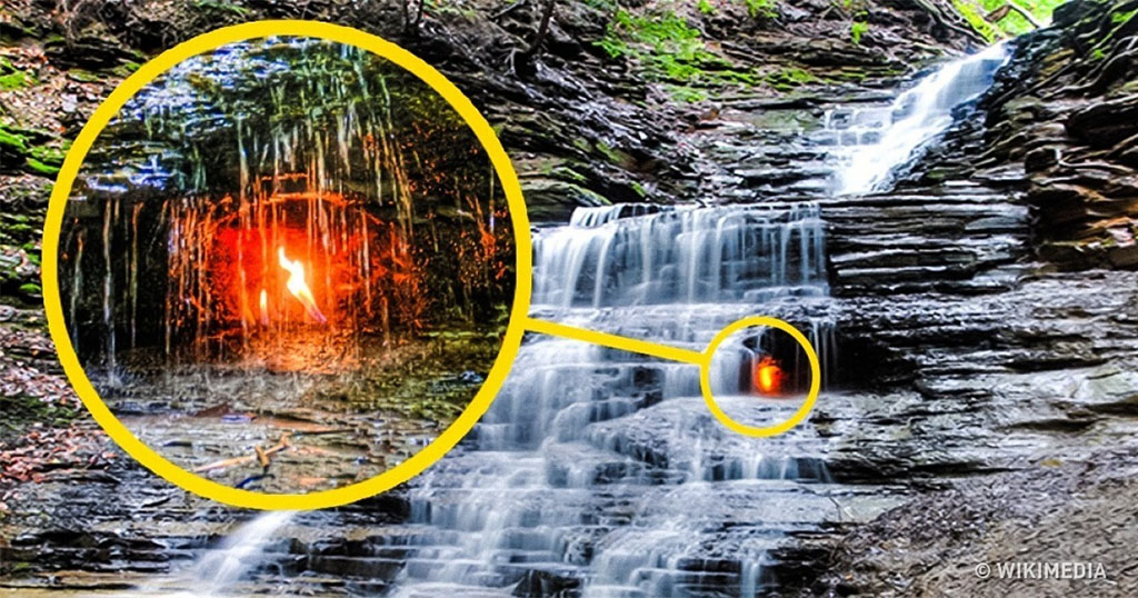 Ένας ασυνήθιστος καταρράκτης δημιουργήθηκε από την ίδια τη φύση. Το φαινόμενο εξηγείται από μικρές ρωγμές που εκπέμπουν φυσικό αέριο. Μερικές φορές η φλόγα σβήνει και πρέπει να ανάψει πάλι. Υπάρχει ακόμη και μια πεποίθηση ότι όποιος ανάβει τη φλόγα, θα είναι ευλογημένος με τύχη. Κάστρο Φραγκοκάστελλου, Ελλάδα