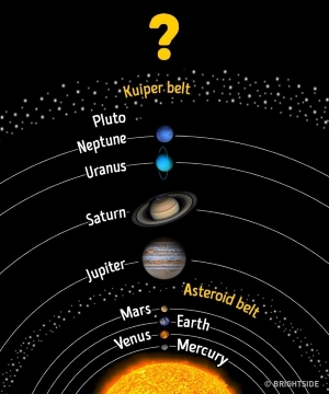 Από τότε που ο Πλούτωνας έπαψε να θεωρείται επισήμως πλανήτης, πιστεύεται ότι υπάρχουν 8 πλανήτες. Η ζώνη Kuiper πέρα από τον Πλούτωνα αποτελείται από παγωμένα αντικείμενα. Οι επιστήμονες ανακάλυψαν χιλιάδες αντικείμενα στην περιοχή που είναι μεγαλύτερα από τον Πλούτωνα. Επίσης, παρατηρήθηκε ένα μεγάλο κενό στην ζώνη Kuiper – ένας άγνωστος πλανήτης στο μέγεθος της Γης τράβηξε όλα τα πετρώματα από την ζώνη πάνω του.