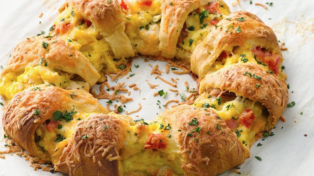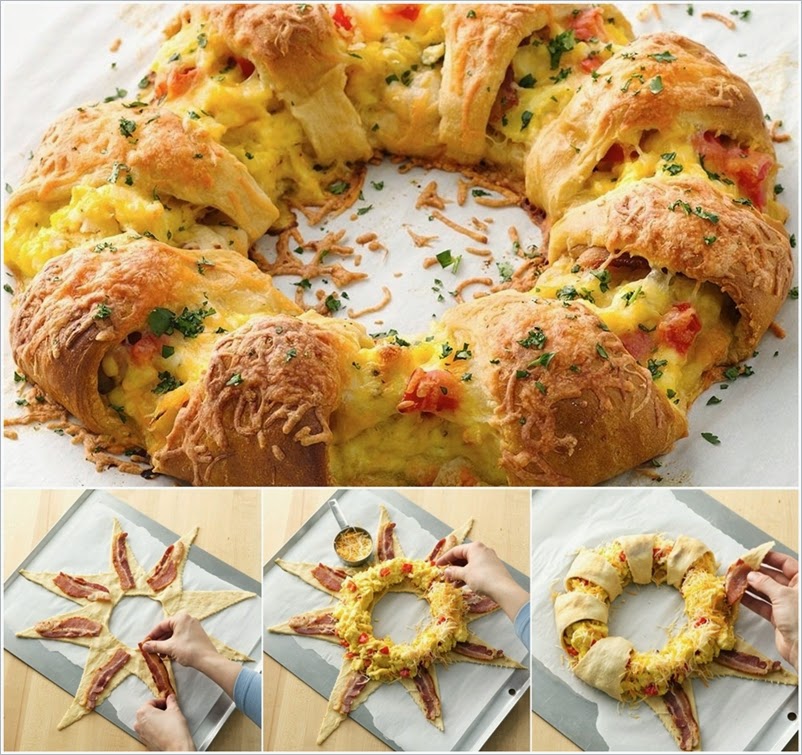Ξετυλίξτε την ζύμη και διαχωρίστε την σε 8 τρίγωνα. Τοποθετήστε τα τρίγωνα με την μικρότερη πλευρά προς το κέντρο, δίνοντας σχήμα αστεριού.