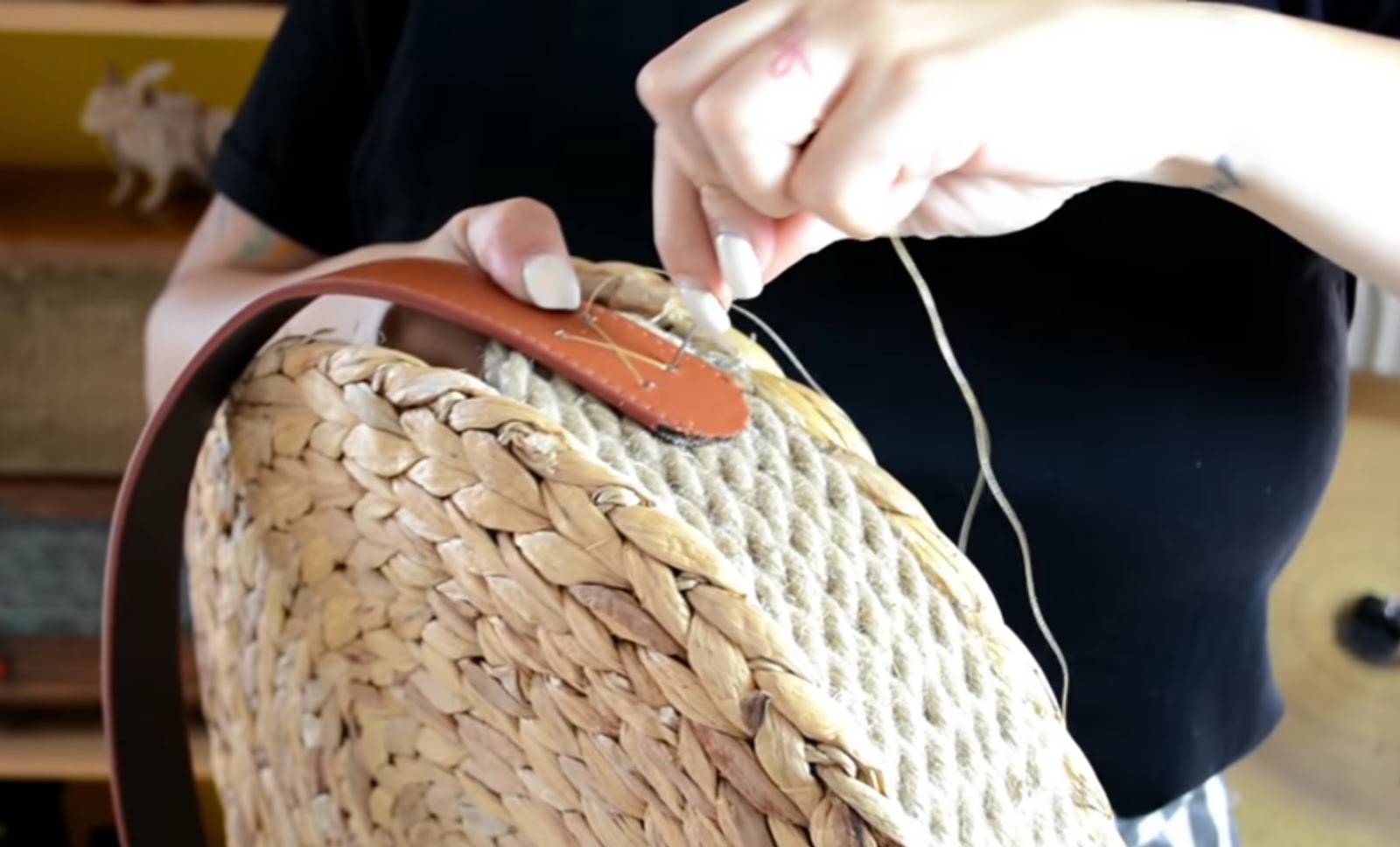 Τώρα που πήρε μορφή η τσάντα μας, στα σημεία που βάλαμε σιλικόνη στο τέλος για να ενωθούν τα τρία κομμάτια μεταξύ τους, ράβουμε με βελόνα και κλωστή για ακόμα πιο σταθερό κράτημα.