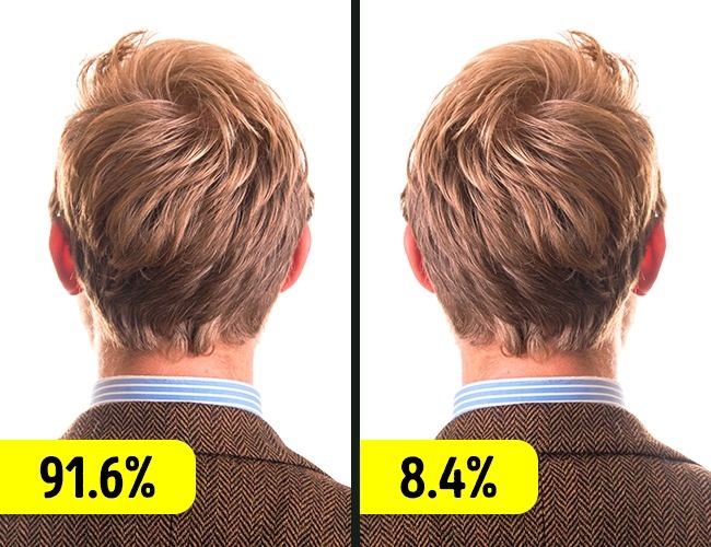 Το 8,4% των ανθρώπων έχουν περιστροφικά μαλλιά στο κεφάλι τους. Εάν ανήκετε στο 10% του πληθυσμού που είναι αριστερόχειρες, οι πιθανότητές σας να μην ανήκετε στην πλειοψηφία με τα συνηθισμένα μαλλιά είναι 45%.
