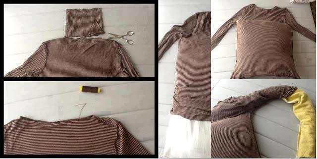Γεμίστε το εσωτερικό της μπλούζας με ένα απλό μαξιλαράκι και συμπληρώστε με παλιά υφάσματα και ρούχα.