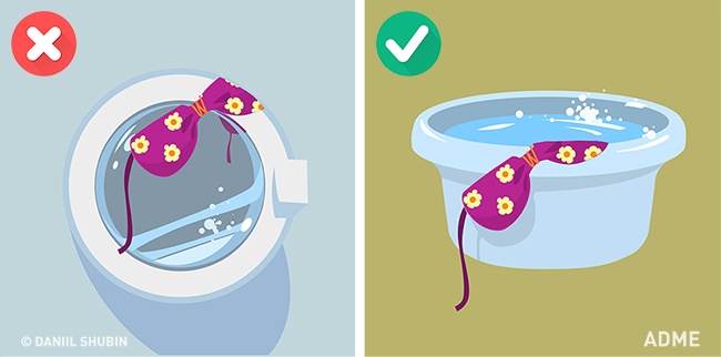 7. Μαγιό. Μαγιό και παρόμοια ελαστικά ρούχα απαγορεύεται να τα πλένετε στο πλυντήριο, καθώς χάνουν την ελαστικότητά τους. Το ιδανικό είναι πλύσιμο στο χέρι σε χλιαρό νερό.