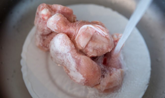 Σε περίπτωση που θα πρέπει να προετοιμάσετε το κρέας γρήγορα, ποτέ μην το ξεπαγώσετε μέσα σε καυτό νερό. Αντ’ αυτού, χρησιμοποιήσετε έναν φούρνο μικροκυμάτων στην αντίστοιχη ρύθμιση για ξεπάγωμα κοτόπουλου.