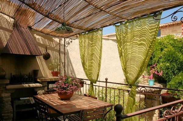 Τις κουρτίνες όλοι μας τι έχουμε συνηθίσει μέσα στο σπίτι, στα παράθυρα και στις πόρτες, αλλά μπορούν να χρησιμοποιηθούν και σε εξωτερικούς χώρους, οπως στο μπαλκόνι αλλά και στη βεράντα. Στην αγορά κυκλοφορεί μια μεγάλη ποικιλία από κουρτίνες σε διάφορα χρώματα και υφάσματα και σίγουρα θα βρείτε αυτό που ταιριάζει στις δικές σας ανάγκες. Αν τώρα το έχετε και λίγο με την ραπτική τότε μπορείτε να αγοράσετε ύφασμα και να φτιάξετε τις δικές σας κουρτίνες στο μέγεθος που σας βολεύει. Δες και αυτό: Βάλε τις κουρτίνες…αλλιώς: 48 έξυπνες ιδέες για να τις χρησιμοποιήσετε στο σπίτι